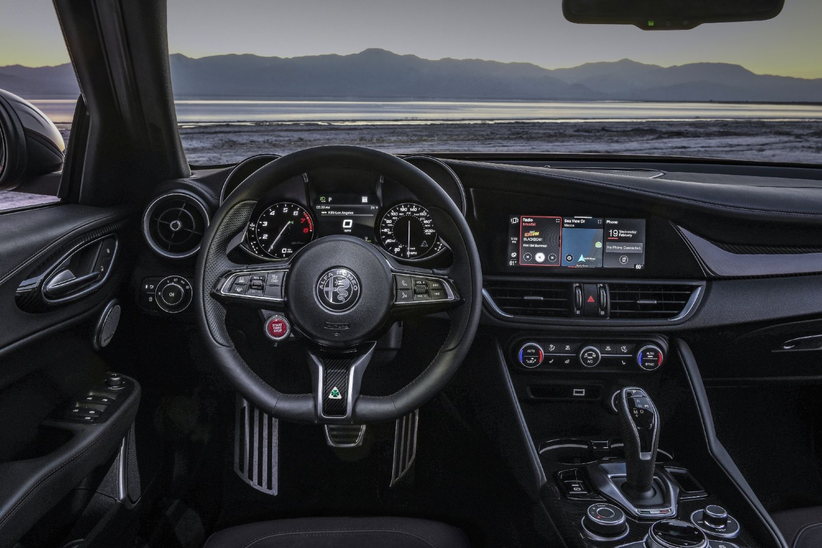 Understanding the base Stelvio's capabilities helps contextualize the Veloce Package's enhancements. The standard model already includes Q4 AWD, the Alfa DNA drive mode selector with Dynamic, Natural, and Advanced Efficiency modes, and aluminum column-mounted paddle shifters for the eight-speed automatic transmission.